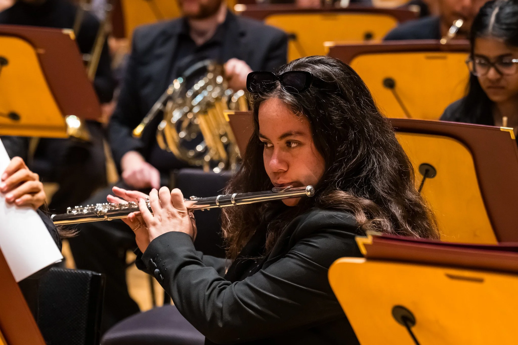 Halfway into the post and I haven’t even talked about my largest commitment at USC: the Trojan Marching Band! In Spring 2025, I had the opportunity to perform with the USC Concert Band on flute, where we put on “SIX: The Musical” in collaboration with the School of Dramatic Arts. Our surprise encore concert the summer after ended up being at the Walt Disney Concert Hall, my dream performance venue since I began music. The room was pretty cool, but this action shot might be even cooler!