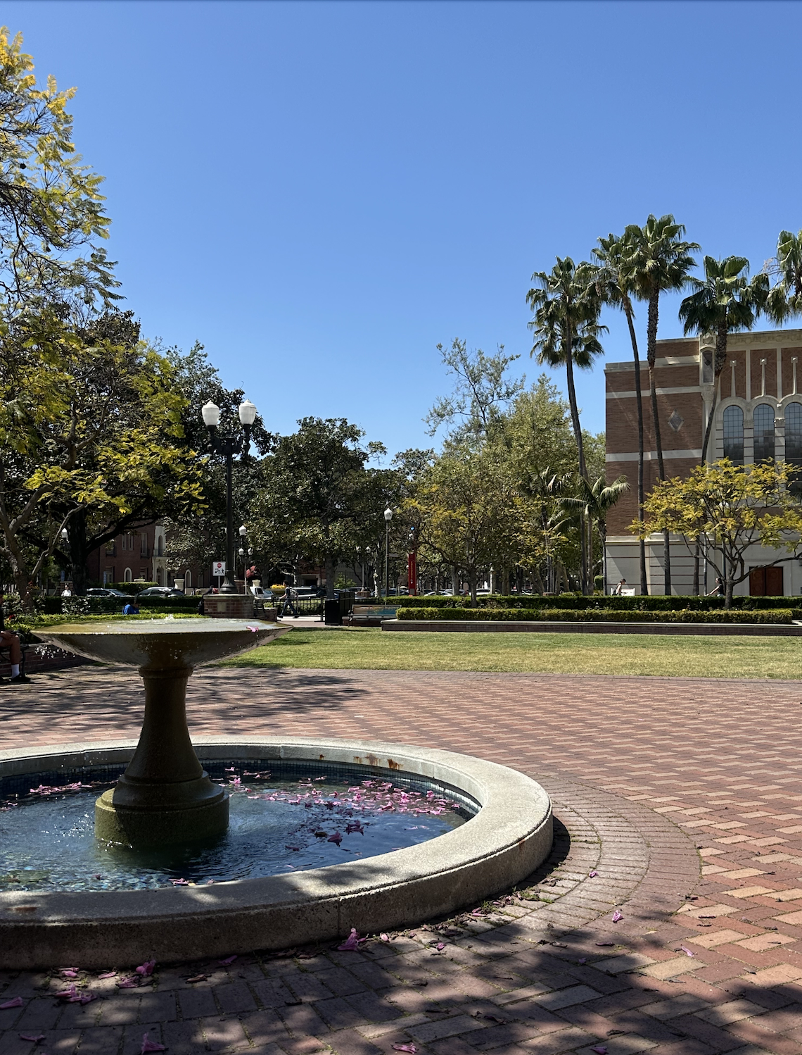 Right by Widney Alumni House, Argue Plaza is filled with rose bushes, meticulously trimmed grass, and a relaxing fountain. I love sitting here to write articles for Daily Trojan or read for my Thematic Option courses in the late afternoon. There’s lots of benches so you may see some other Trojans doing the same.