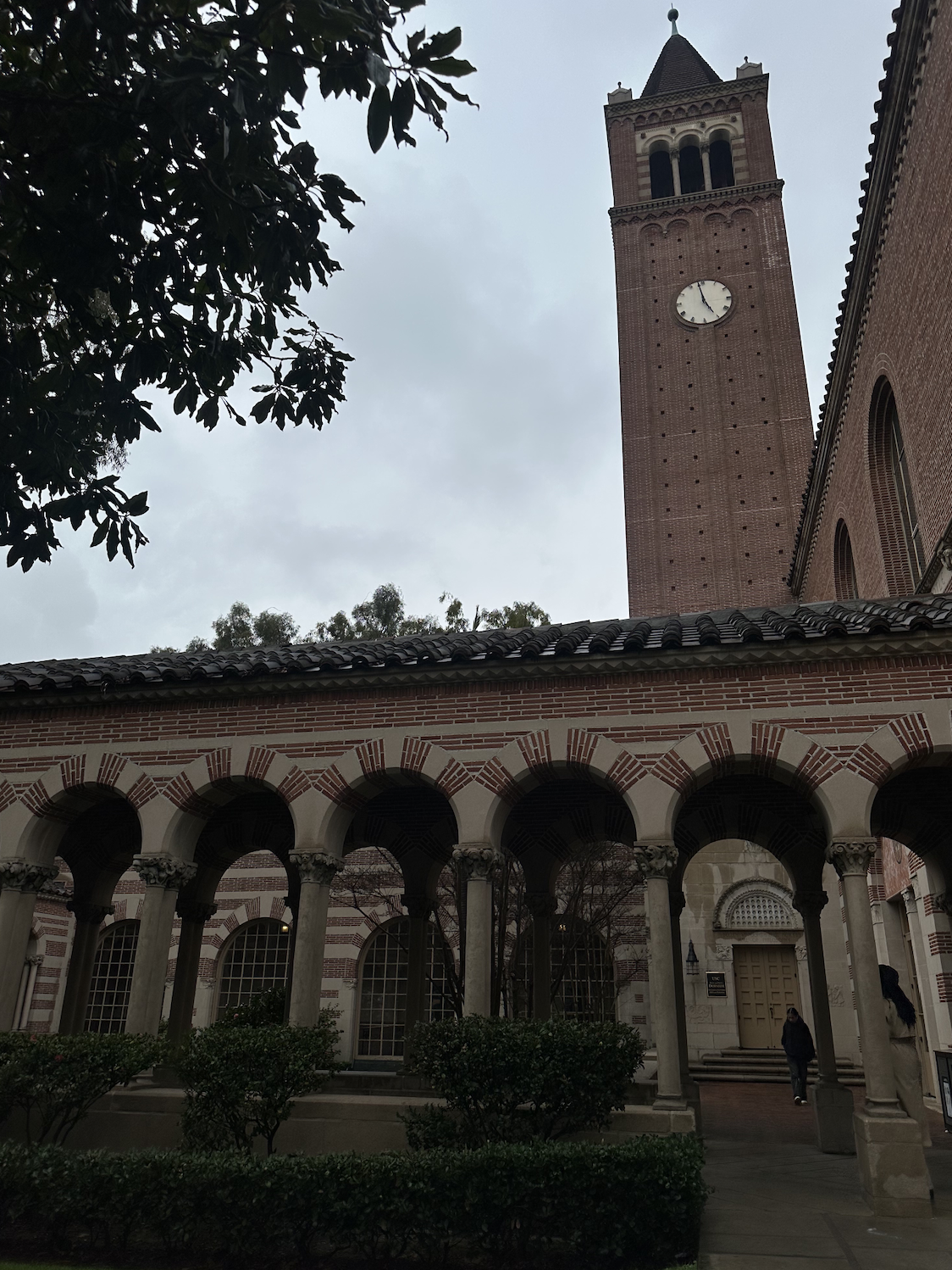 Sitting under the pink floss silk flower trees and people watching are some of the perks of this study spot at Wallis Annenberg Hall.