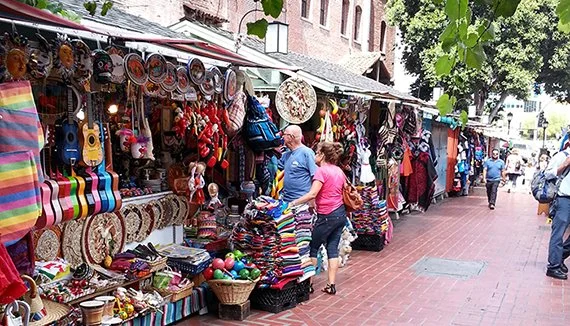 Customers shopping in the Olvera Street Marketplace in the El Pueblo neighborhood of Downtown Los Angeles (via American Planning Association).